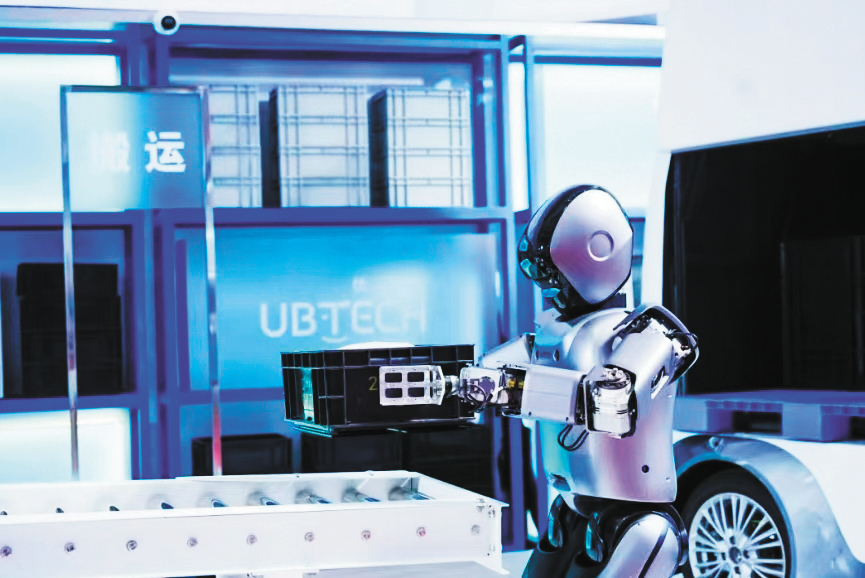 这次世界机器人大会上,我国生产的D11系列人形机器人已可以根据应用场景不同,衍生出“力量型”和“灵巧型”不同的产品,目前已在长虹电视生产车间测试应用,承担着零件分拣、重物搬运等工作。