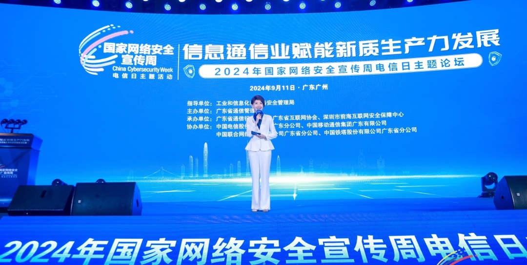 9月11日,2024年国家网络安全宣传周电信日主题论坛在广东省广州市成功举办。本次论坛以“信息通信业赋能新质生产力发展”为主题,旨在宣传网络安全理念、普及网络安全知识、推广网络安全技能,共同探讨加快网络安全创新应用,赋能新质生产力发展的创新举措。