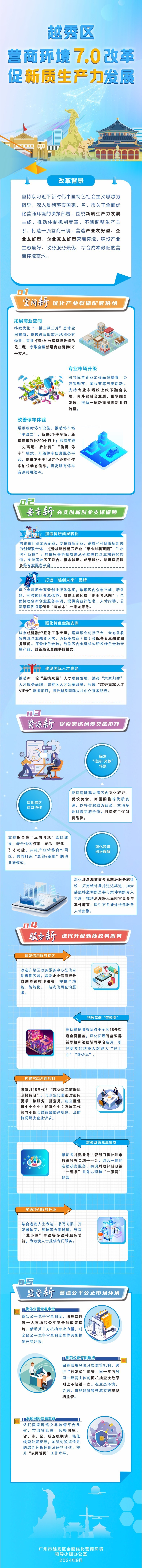 为深入贯彻落实国家、省、市关于全面优化营商环境的决策部署,打造一流营商环境,营造产业友好型、企业友好型、企业家友好型营商环境,广州市越秀区紧扣“加快形成新质生产力”改革主线,聚焦区域特色,迭代实施营商环境7.0改革,以优良营商环境充分激发市场主体的活力、发挥社会创造力,完善现代化产业体系,服务“百县千镇万村高质量发展工程”,着力建设产业生态最好、政务服务最优、综合成本最低的营商环境高地。