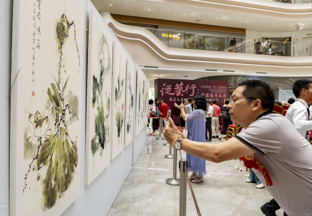 “这个设在商场的书画展很接地气,就在群众家门口,让人随时随地都可以欣赏和感受到美。”市民陈先生说。“在商场里就能欣赏到高水平的画作,我们发现梁老师的荷花作品无需雀鸟鱼虫点缀,同样富有张力和美感。”市民谢小姐说。