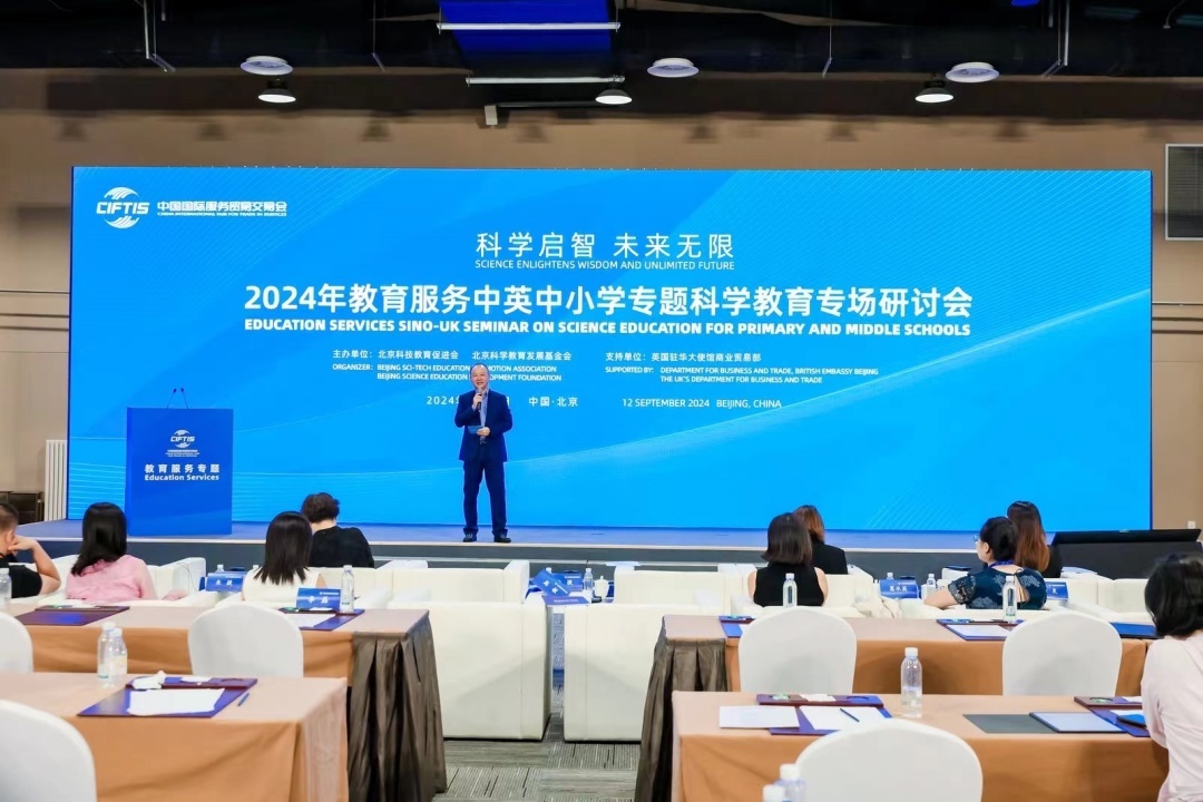 9月12日,2024年中国国际服务贸易交易会在北京首钢园盛大开幕,教育服务专题以“开放、合作、创新、发展——塑造教育发展新动能”为主题,专题展区总面积达6600平方米,精心规划为国际合作与交流、人工智能与科技赋能、教育服务与实践创新、宣介与发布四大板块,吸引了线下参展商97家,覆盖五大洲15个国家和地区,线上参展商150余家,国际化率超过40%,中外教育同行汇聚一堂,共同探讨教育服务的新趋势和未来发展方向。