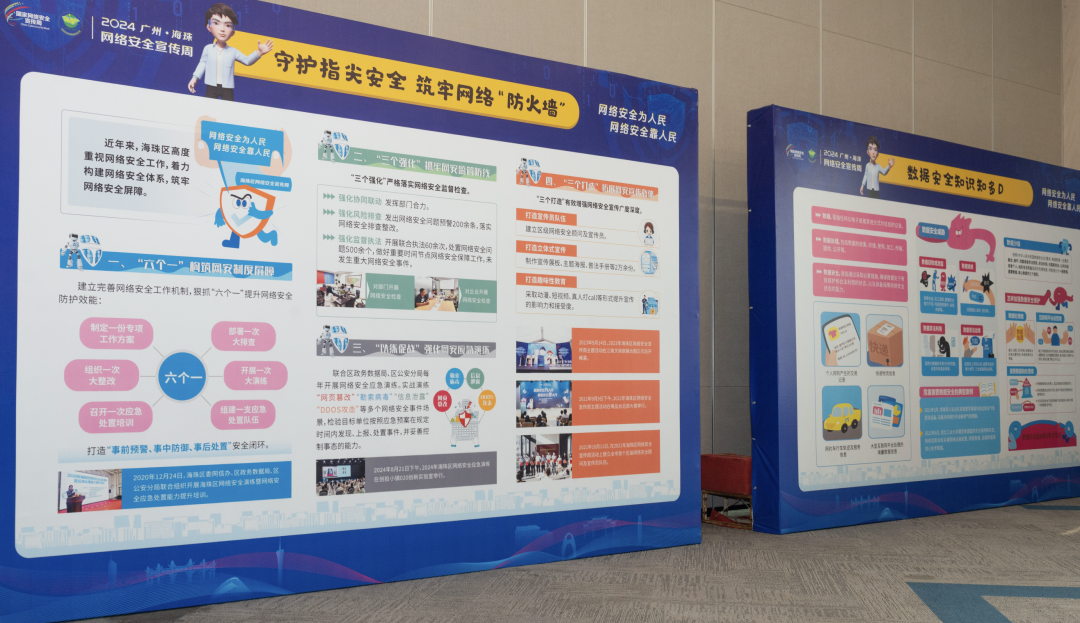 在今年国家网络安全宣传周期间,海珠区举办了一系列的网络安全活动。其中包括举办网络安全应急演练,实战演示政府单位、企业遭受网络安全攻击事件时的应对处置场景,提升单位、企业发现上报、妥善处置网络安全事件的能力水平;举办网络安全进校园活动,聘任网络安全校园宣传员、开展反诈普法“开学第一课”,护航青少年健康成长;举办网络安全周进园区活动,开展网络安全City Walk体验打卡,派发网络安全宣传资料,传播网络安全防范技巧,让群众在轻松愉快的氛围中学以致用网络安全知识。