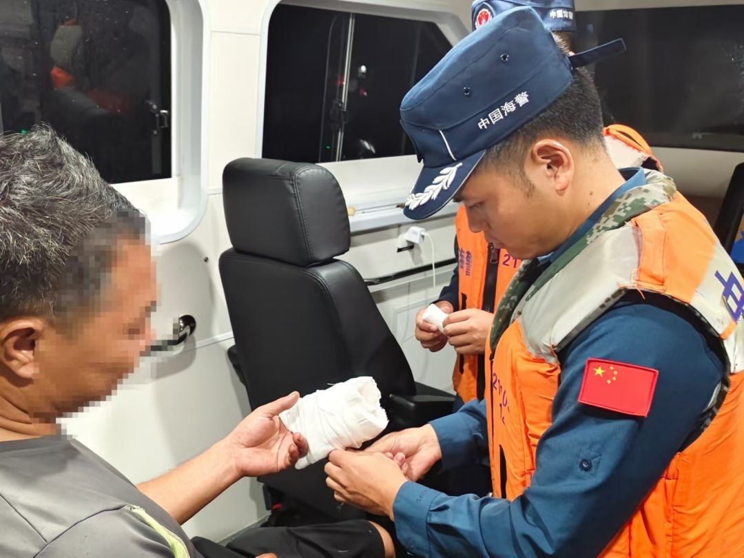 “一名渔民在黄茅海大桥附近海域海上作业时发生意外,手指被夹断,情况紧急,请求海警救援。”9月8日22时许,江门海警局新会工作站接到新会渔政通报。经研判分析,江门海警局立即启动救援预案,针对实际情况,派遣执法艇携带医疗设备前往事发海域展开救援。