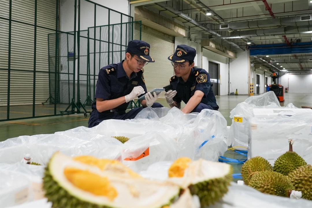 机场海关保障全国首批马来西亚鲜食榴莲高效通关。