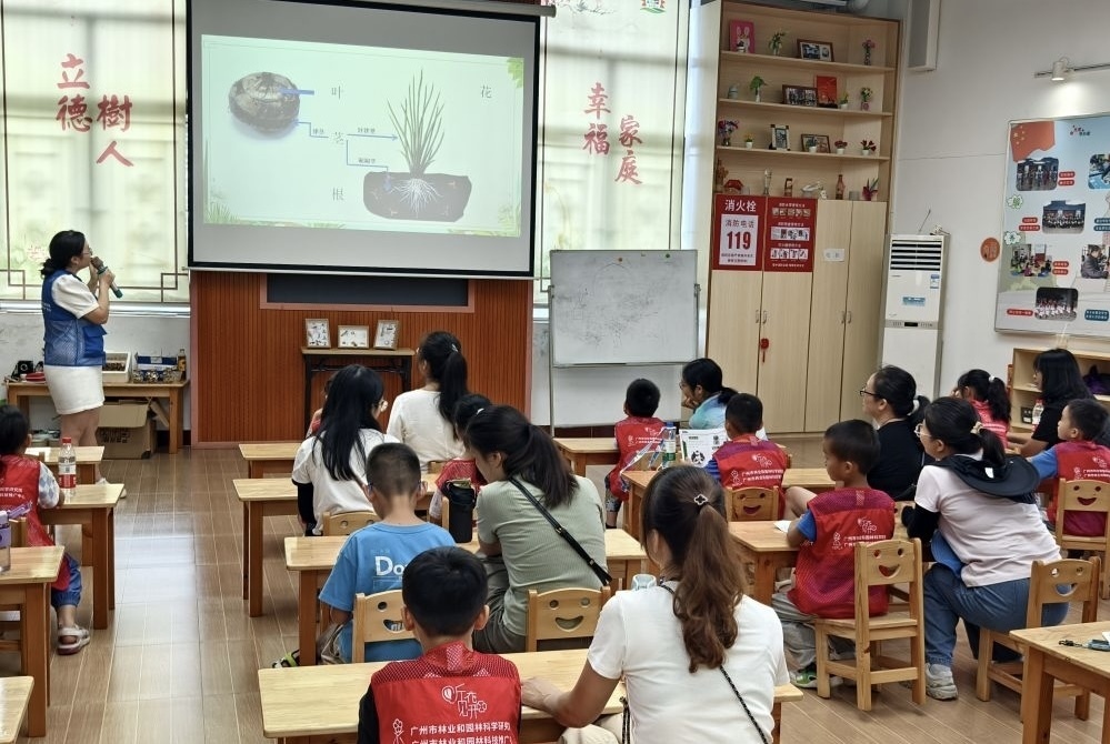 近日,广州市番禺区城市管理和综合执法局联合广州市林业和园林科学研究院在番禺儿童公园举办生态科普活动,科普老师带领小朋友及其家长探秘“大石三宝”的前世今生。