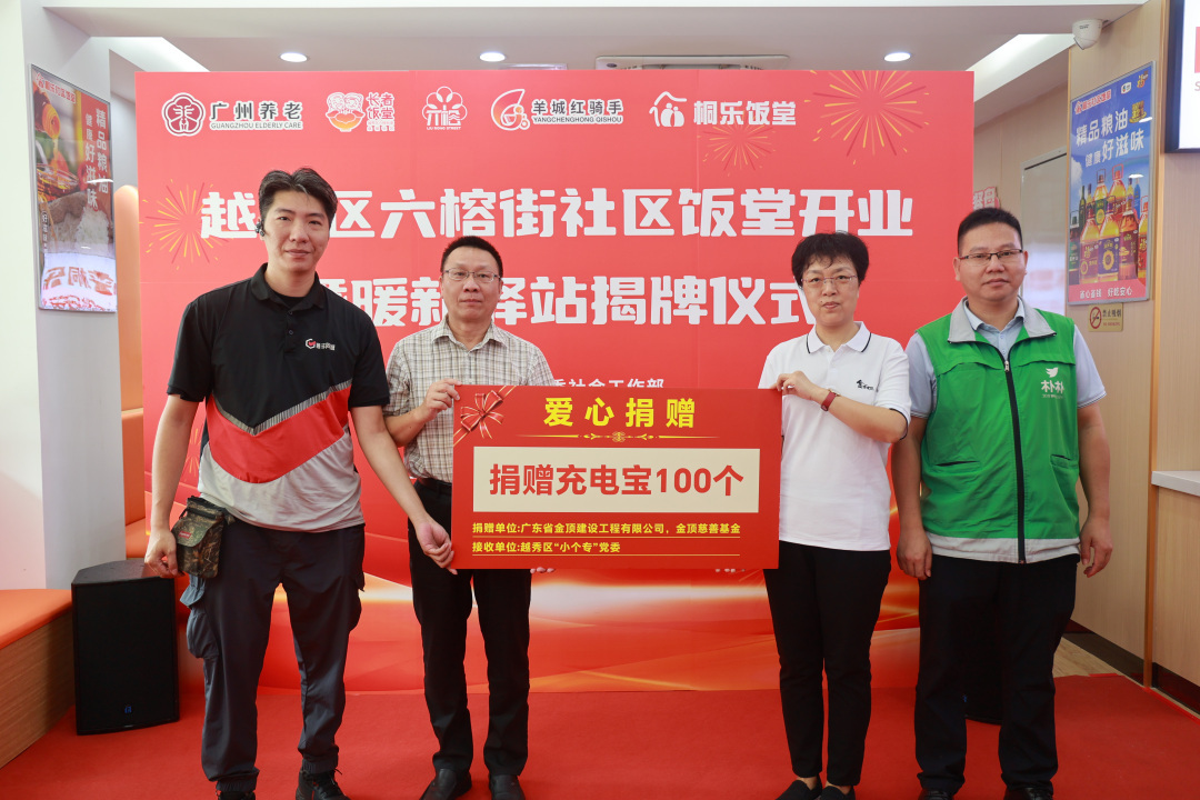 在“暖新驿站”揭牌仪式上,越秀区委社会工作部向全区发出关爱新就业群体的倡议,倡导广大爱心商家为外卖快递小哥提供歇息充电的便捷服务、广大小区物业企业为外卖快递小哥提供放行指引的暖心服务,并呼吁广大外卖快递小哥树立主人翁精神,积极参加辖区志愿服务队,投身平安建设、文明创建、绿美建设。市、区、街有关负责同志还向外卖快递配送员代表派发了中秋慰问品,爱心企业金顶建设工程有限公司发起的“情暖越秀金顶慈善基金”向区“小个专”党委捐赠100个手机充电宝保障外卖快递新就业群体充电应急。