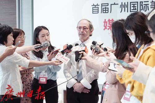 首届广州国际美妆周开幕日,斯坦福大学结构生物学教授、2013年诺贝尔化学奖得主迈克尔・莱维特接受媒体采访