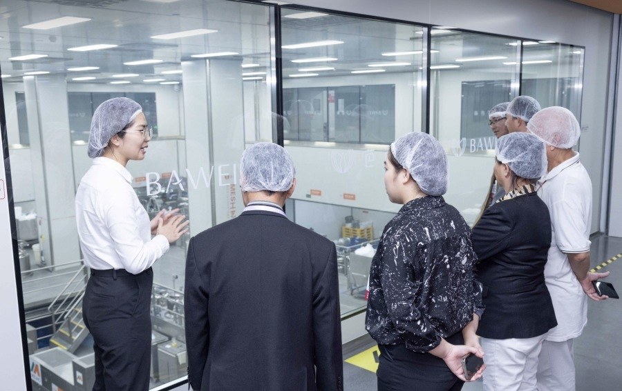 首届广州国际美妆周白云分会场,越南访团参观芭薇5G智慧工厂