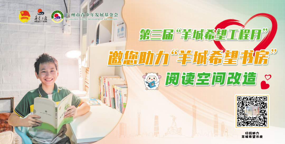 市青基会向更多爱心青年发出邀约:一起关注、参与“羊城希望工程月”宣传,共同为青少年阅读空间改造助力,以更强烈的责任感和使命感,以更有力有为的实际行动帮助更多困境青少年,扎实推进新时代希望工程改革创新、提质升级,努力为青少年提供新助力、播种新希望。