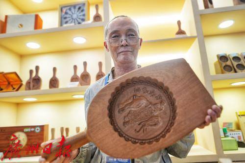 新丰老匠人在精心雕刻饼印。