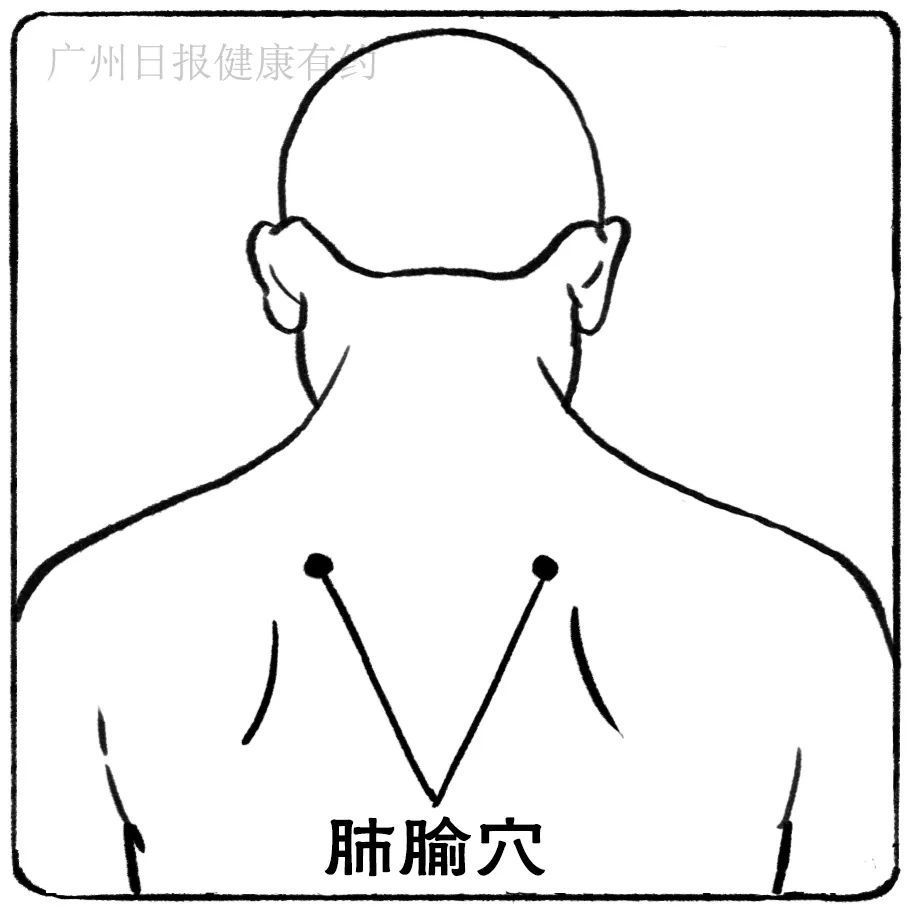 肺腧穴:位于人体背部第3胸椎棘突下,旁开1.5寸。