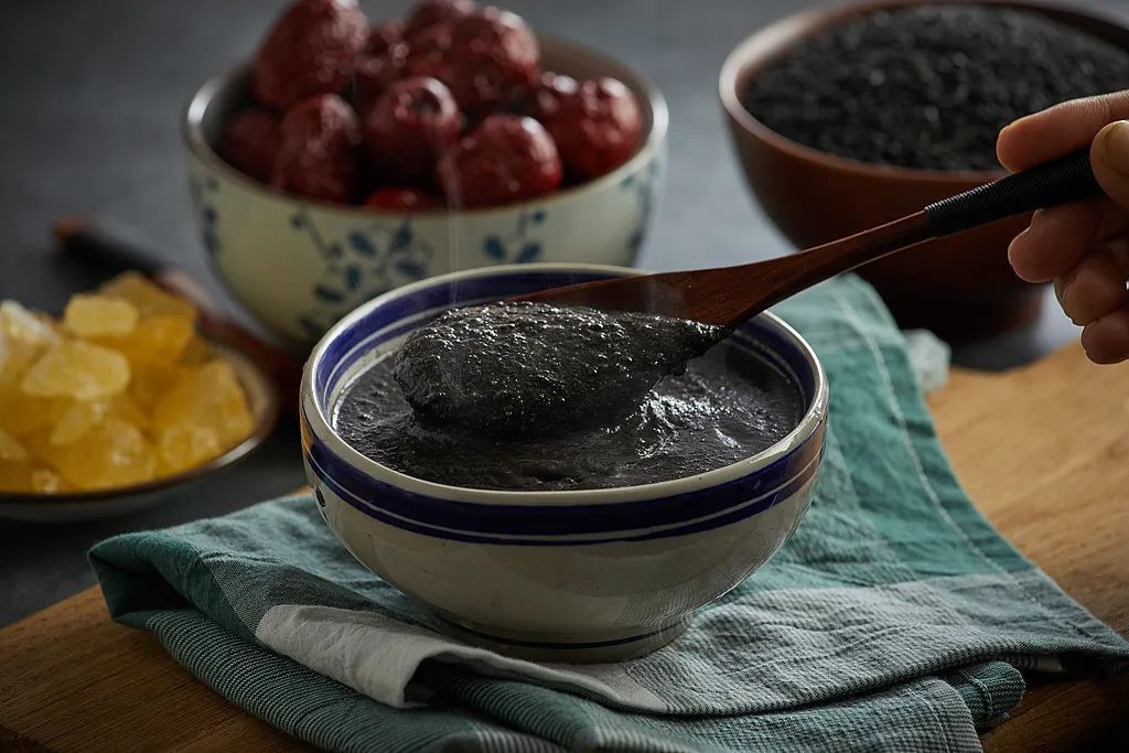 制作:先将黑芝麻淘洗干净,晒干后炒熟研成细粉,粳米入砂锅加清水500毫升,文火煮粥,待粥将熟时,慢慢将芝麻粉调入粥内,加入白糖,搅匀稍煮片刻即可。