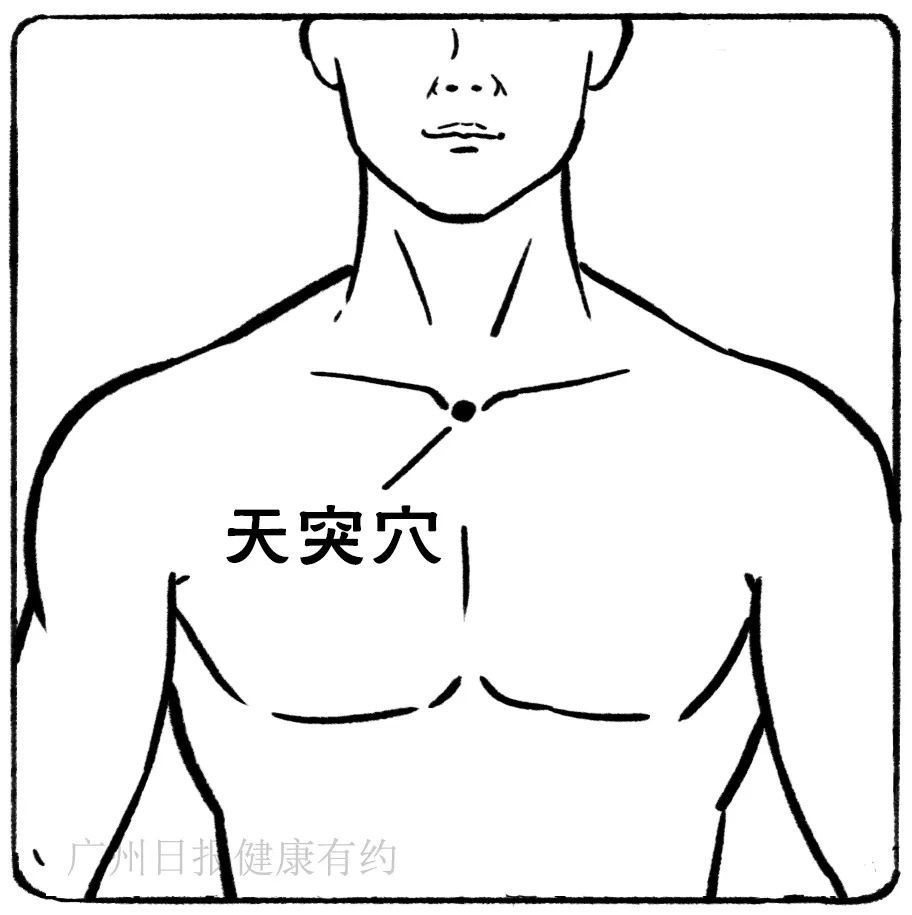 手法:用食指指腹按揉天突穴2-3分钟,以感觉酸胀为宜。