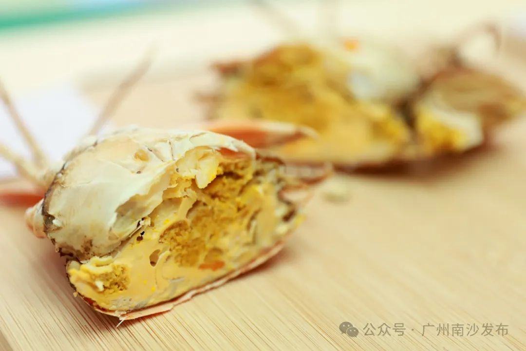 在“蟹后”的评选中,评委们仔细观察蟹膏的色泽等,最终,广州南沙区澳鑫水产科技有限公司选送的黄油蟹,以《南沙青蟹商品蟹等级规格》特级黄油蟹的标准,夺得“蟹后”比赛第一名。