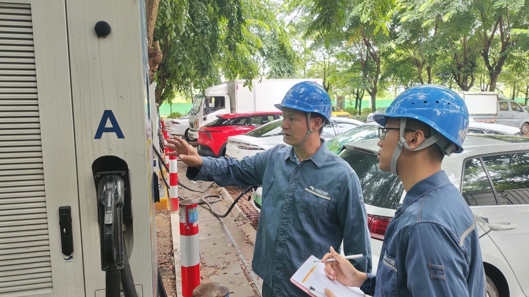 为保障市民中秋绿色出行,东莞西区供电局组织人员提前对辖区内各充电桩开展专项巡视和检查。工作人员认真检查充电桩接口和充电状态,查看低压线路情况,对变压器和开关柜进行红外测温,确保设备运行正常,满足新能源车主使用需求。同时该局组织了51名技术骨干,对涉及保供电的重要场所、重要设备按运维策略要求开展特巡特维和安全隐患排查,为群众佳节用电保驾护航。截至目前,西区供电局已完成检查线路279回。