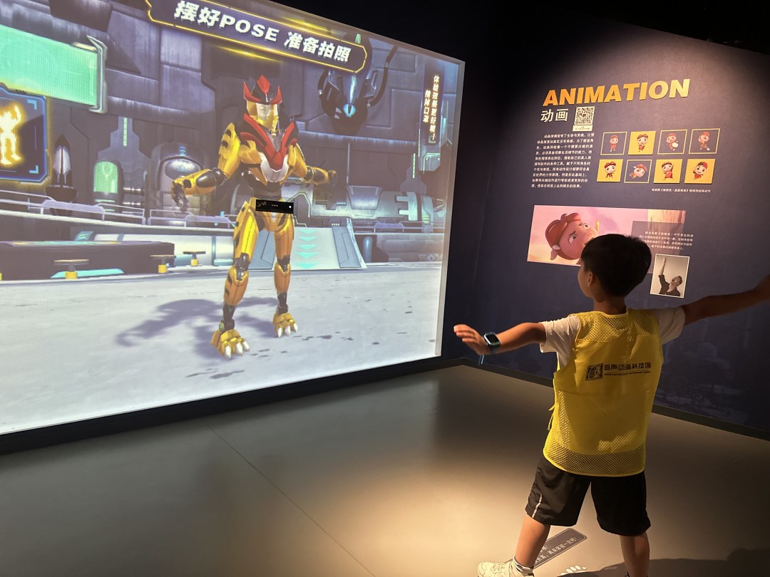 “在咏声动画科技馆,市民游客能够体验感受体验各式各样的‘黑科技’,探索数字动画制作的奥秘。”咏声动画科技馆负责人李莉莉介绍,咏声动画科技馆通过AR/VR、人工智能、动作捕捉等虚拟现实技术的综合叠加应用,不仅让游客更加深入地了解动画制作的原理和技术,同时也大大增强了游览的互动性和体验感。“比如游客能通过AIGC动画生成装置体验制作属于自己的数字动画,还可以体验动捕技术的运用等。”