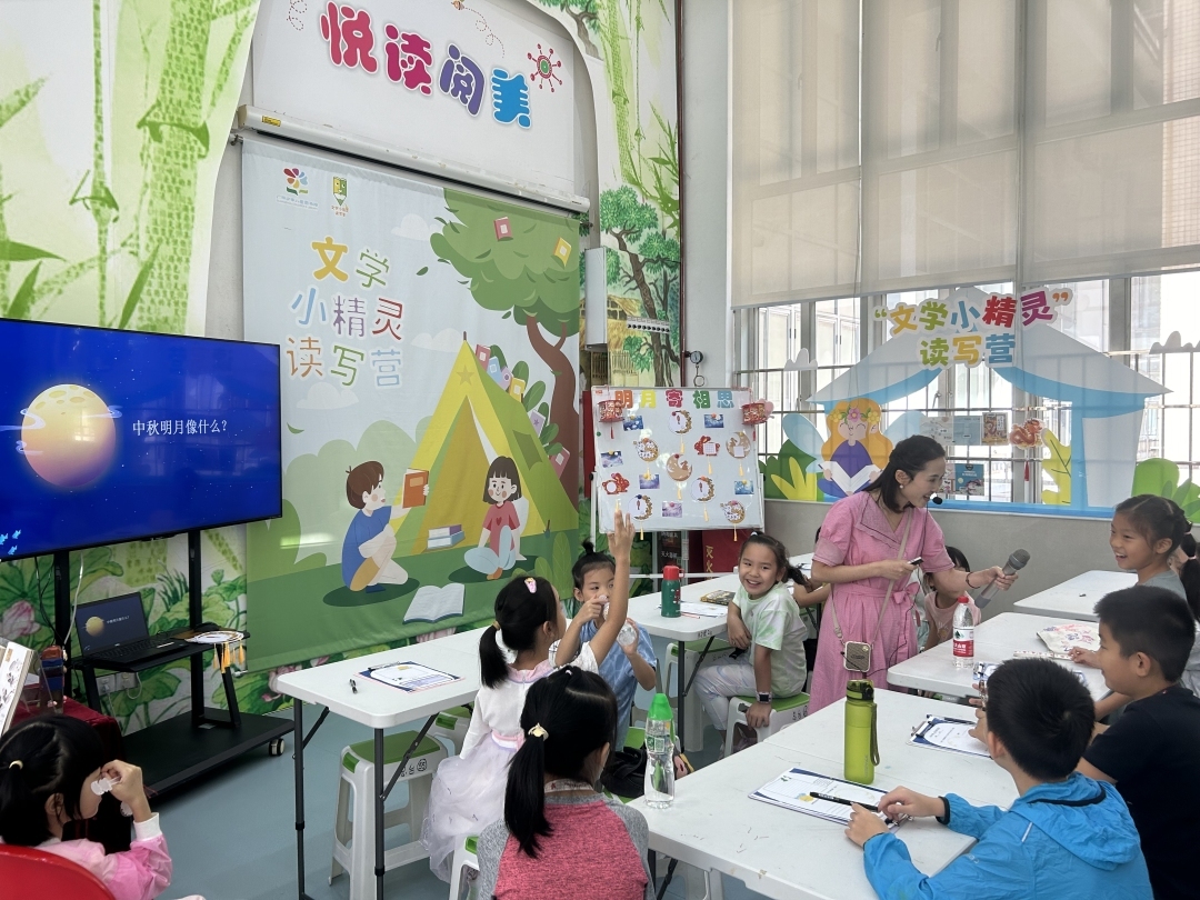 中秋将至。由广州少年儿童图书馆、广州市作家协会、花城诗会共同举办的“文学小精灵”读写营第二期在广州少年儿童图书馆文学馆举行。著名诗人黄礼孩老师、越秀区骨干语文教师李玲燕老师以“明月寄相思”为主题,与少儿读者共赴中秋诗词之旅,感受月光的温柔,领悟思念的绵长,体会团圆的温暖。