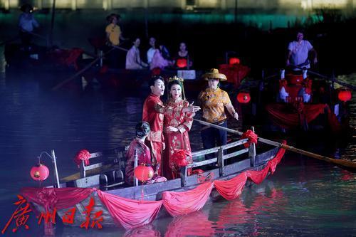 南沙首部沉浸式实景剧《水乡情画》在东涌水上风情街拉开序幕。