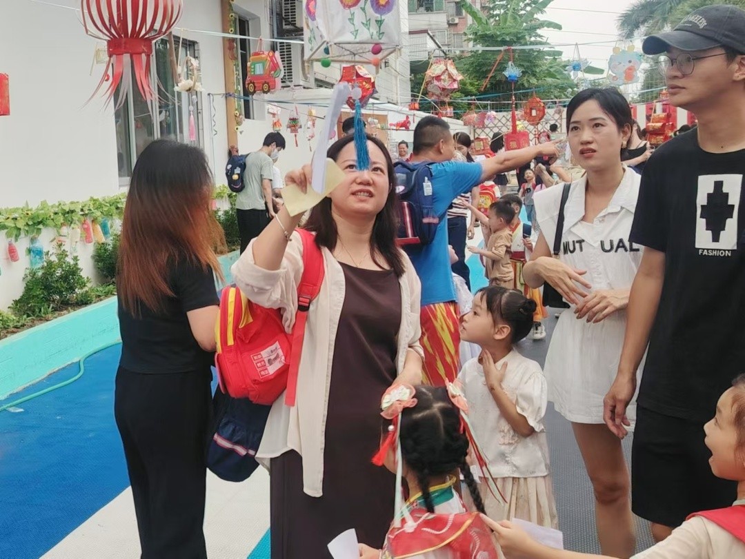 萧岗花园社区则携手齐富幼儿园、云城街社工站共同开展了中秋亲子游园活动,吸引了周边亲子家庭近200对。现场设置了投壶、做月饼、猜灯谜等丰富多彩的小游戏,让孩子们在游戏中感受中秋佳节的传统文化氛围,还通过问答领奖品的方式,向幼儿们普及了登革热防控知识,引导他们养成及时清理积水的良好习惯。