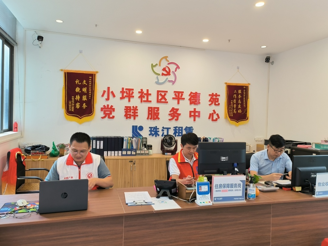 据了解,小坪社区平德苑党群服务中心于2023年正式建成,内设小坪社区颐康服务站、平德苑健康工作室、健康小屋等,同时建成党群服务中心综合前台,联合广州珠江住房租赁发展投资有限公司(简称珠江租赁)、广州市溢顺物业管理有限公司(简称溢顺物管)一体办公,让服务“多跑路”、让居民“少跑腿”。