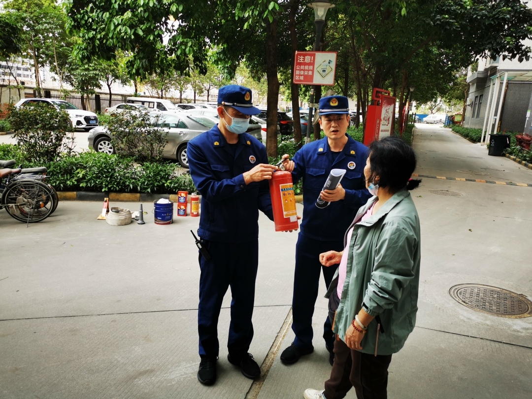 3月,社区特邀广州市白云区金碧消防救援站,在小区开展“物业小区春夏消防演练”活动,活动现场模拟电动车起火突发状况,讲解灭火重点和流程,居民在消防员带领下用水枪进行扑救,吸引近50名居民参加,有效强化居民急救意识。