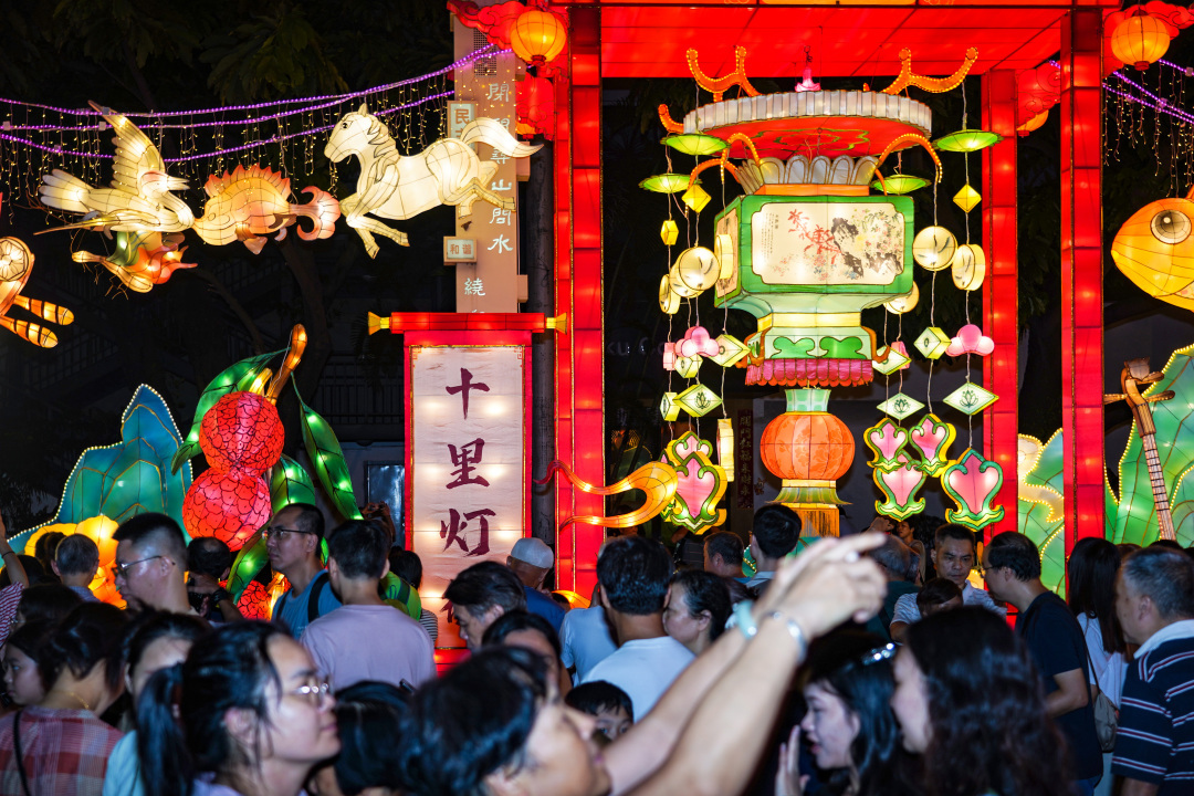 华灯璀璨,火树银花,广州文化公园中秋灯会从1956年开始,至今已经举办近70年。它以灯组的精湛工艺、绚丽色彩以及浓郁的岭南风情享誉羊城,成为了广州市民心底中的乡愁,是他们一年一度欢度中秋佳节的保留节目。