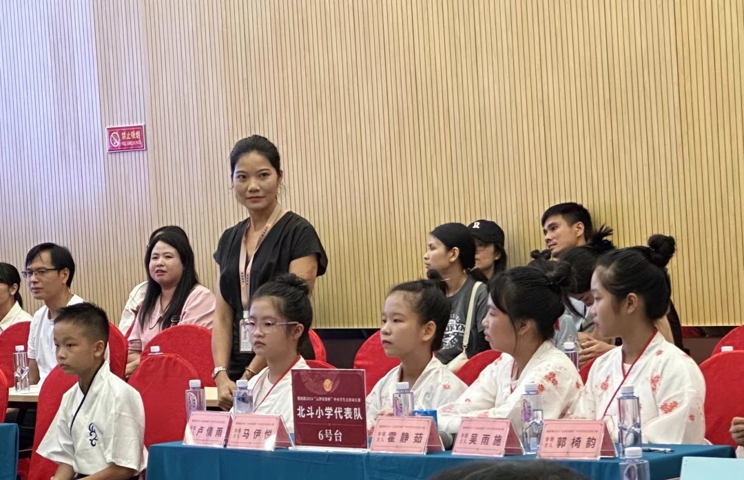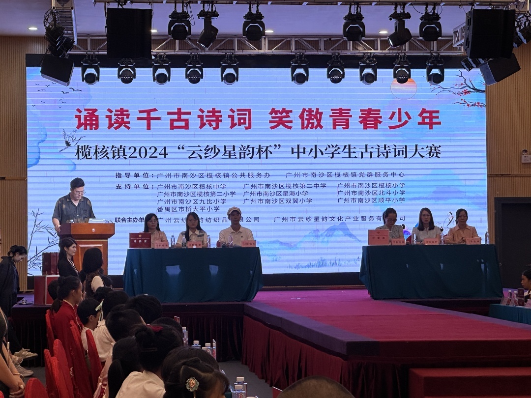 9月15日,广州市南沙区“榄核镇2024‘云纱星韵杯’中小学生古诗词大赛”在人民音乐家冼星海的故里、广州市南沙区榄核镇湴湄村星海路40号广州市云纱星韵香云纱非遗文化园开赛。来自南沙区和番禺区10所中小学的300多名师生身着汉服,智聚一堂,拉开了精彩纷呈的古诗词比赛。