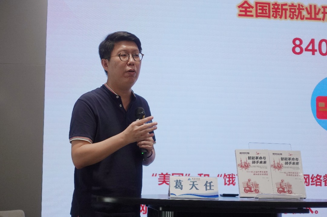 9月14日,上海人民出版社以“破解生活算法——外卖快递骑手的逆行人生与职业未来”为主题召开的《智能革命与骑手未来》新书分享会在上海图书馆东馆举行。同济大学政治与国际关系学院副教授、博士生导师葛天任现场进行新书分享。
