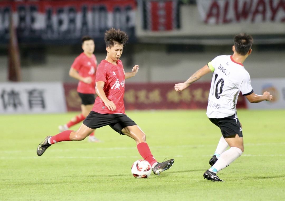 第50分钟,苏州东吴的梁伟棚直塞禁区,外援伊巴谦禁区内面对霍深坪冷静推射破门,广州队以0比1落后。