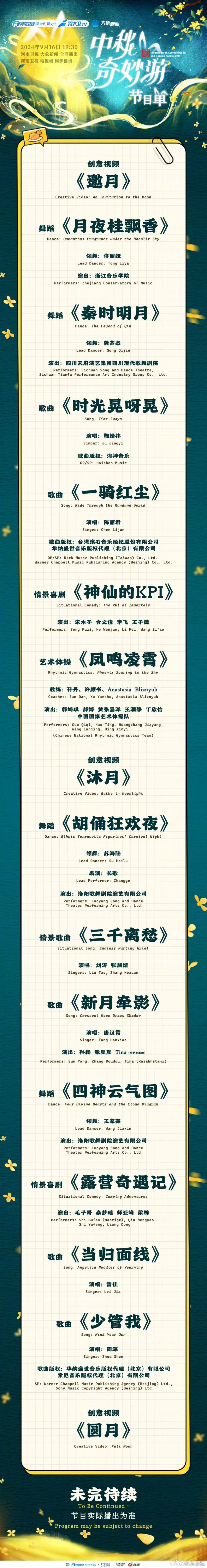 就在今晚!《2024中秋奇妙游》节目单公布→