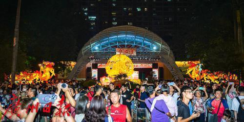 亮灯仪式后,中心台随之进入“月是故乡明”中秋音乐会的表演环节。一众知名歌手、乐队为市民游客献唱《月半小夜曲》《城里的月光》《花好月圆夜》《月亮代表我的心》等多首以月亮为主题的经典流行歌曲,营造浓浓的浪漫氛围。
