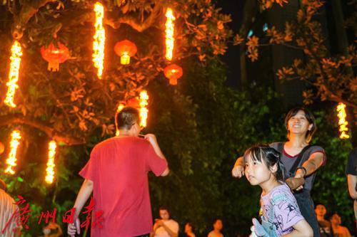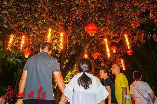 诗词灯饰从枝头垂下,充满诗意古韵与节日氛围,深受市民喜爱