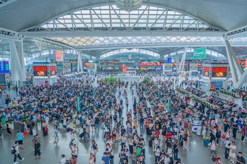 从数据来看,广东省内、湖南省内短途出行以及广东、湖南两省间省际出行比较火热,客流呈现出以短途探亲、旅游客流为主的特点。广州南站、深圳北站、长沙南站等大型枢纽车站客流密集,前一日发送旅客排名靠前,分别发送旅客39.5万、28.7万、21.3万人次。