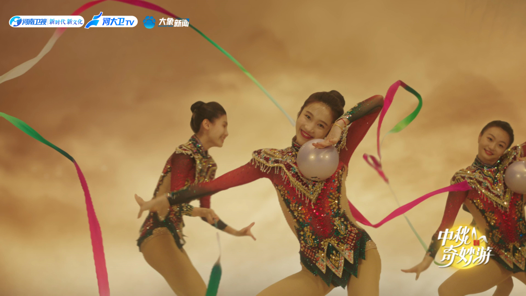 值得一提的是,在巴黎奥运会上夺得集体全能金牌的中国国家艺术体操队,此次也惊艳亮相《2024中秋奇妙游》,郭崎琪、郝婷、黄张嘉洋、王澜静、丁欣怡“五朵金华”再次演绎《凤鸣凌霄》,在古风乐器的悠扬中,或身着夺冠队服或化身古代美人,展现着汉唐盛世的多元、开放,让人仿佛穿越时空,沉浸在无尽遐想中。
