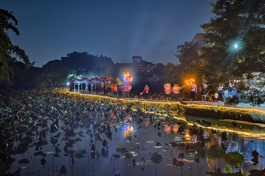 秋月盈满,火龙腾飞!9月16日晚,在中秋月圆夜前夕,佛山市南海区九江镇璜矶舞火龙再度精彩上演。