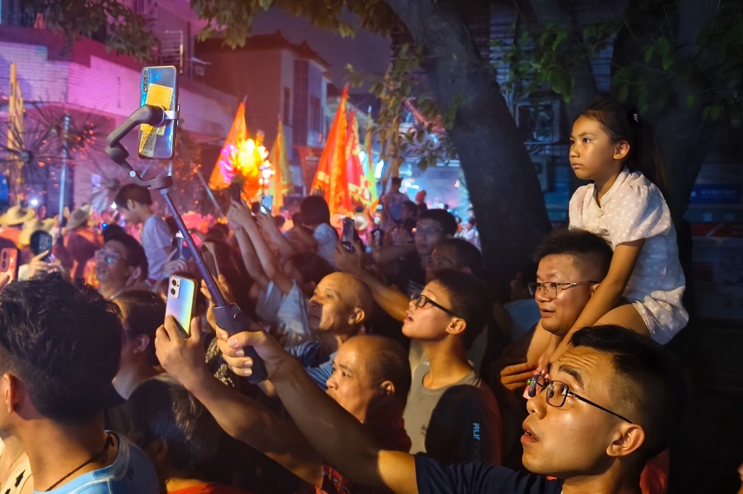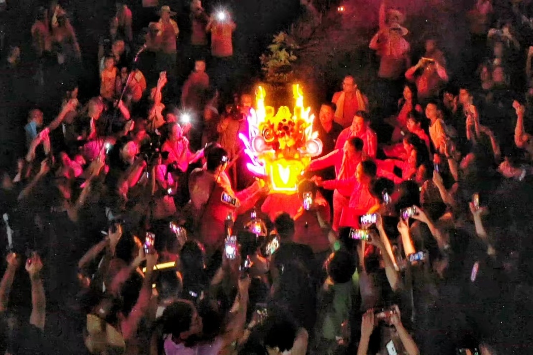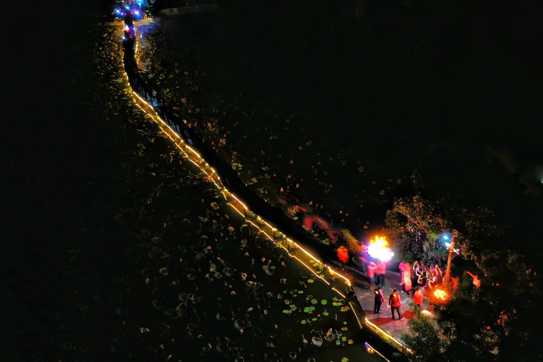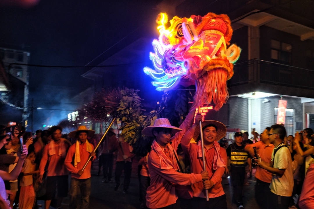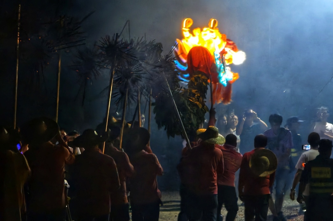 火龙途经11个经济社,每经过一个经济社,当地的居民便会接力舞龙,沿途烟火璀璨,蔚为壮观。