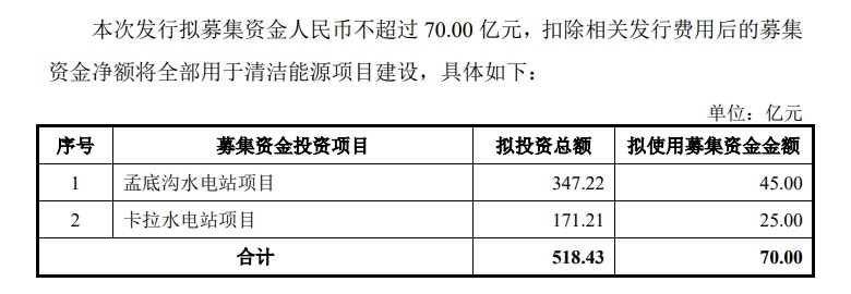 9月17日晚间,国投电力发布公告称,公司拟以12.72元/股的价格向社保基金会发行550314465股A股股票,募集资金不超过70亿元。募资扣除相关发行费用后全部用于孟底沟水电站项目、卡拉水电站项目。