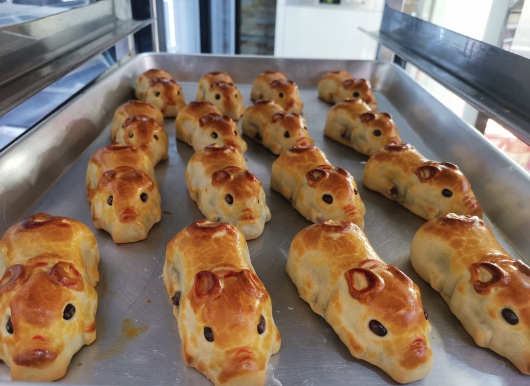在百福来,还有一款“猪笼入水”月饼,也是老一辈珍贵的回忆。竹编的小笼子里,装着可爱的小猪月饼,有蛋黄莲蓉、蛋黄豆沙两种口味,饼皮很酥脆,用料很足。“这可是我们的童年回忆,一般都是爷爷奶奶买给孙子、孙女吃的,还有的街坊家里办喜事也会来买。”乾叔说,在广东话里面,“猪笼入水”的寓意是财源广进、财运亨通。所以,“猪笼入水”月饼可不仅仅是可爱,还有很好的意头。
