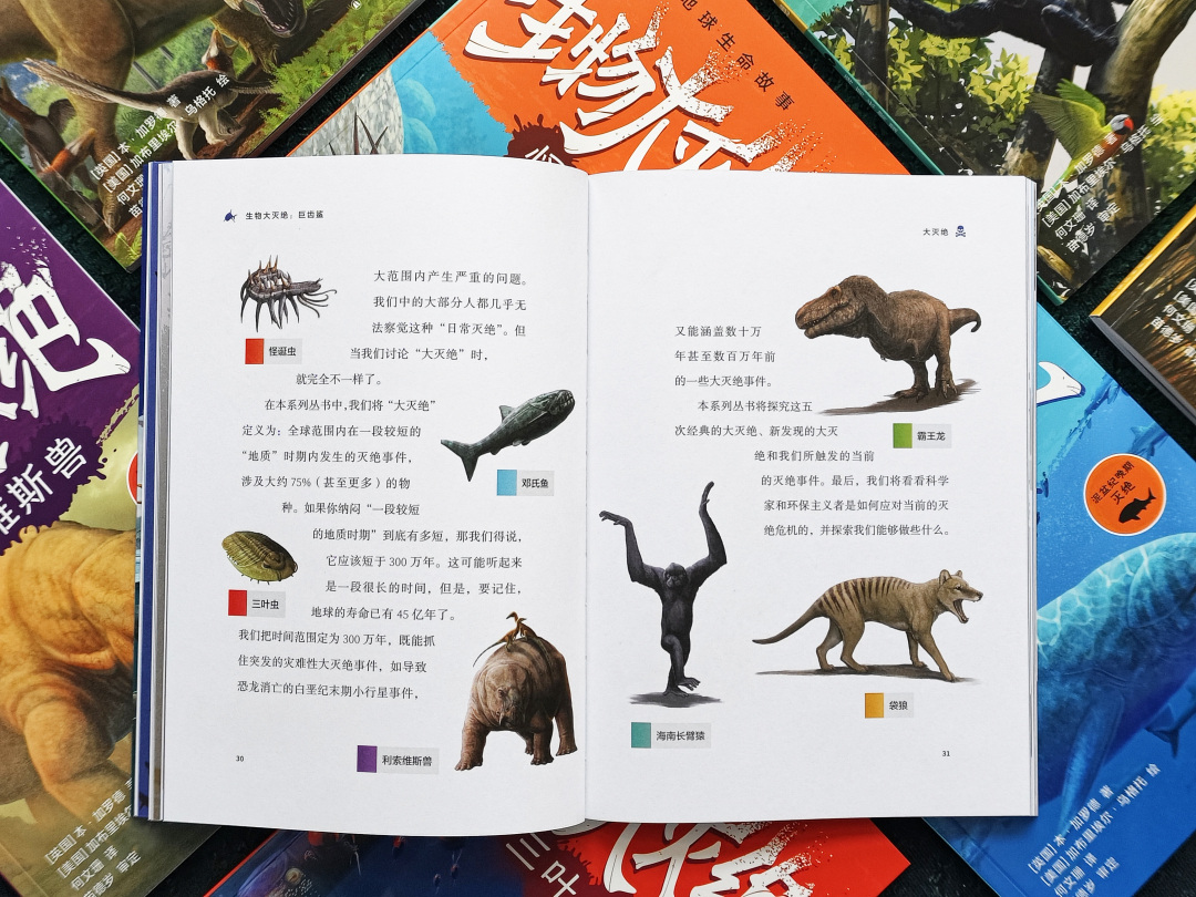 《地球生命故事·生物大灭绝》由科普专家、演化生物学家本·加罗德和《史前星球》美术顾问、著名古生物画家加布里埃尔·乌格托共同创作。这套书展示古生物研究前沿成果,许多知识点密切结合中小学科学、生物、地理等课程。