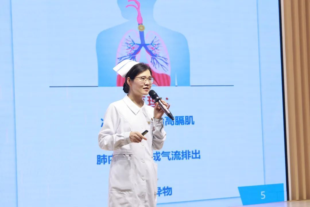 当气道卡异物时,除了寻求别人的帮助,也可以实施自救。中山一院门诊赵明副主任护师为同学们上了一堂题为《气道卡异物,剪刀石头布》的应急救护知识与技能普及课,并现场操作示范、讲解海姆立克急救法。