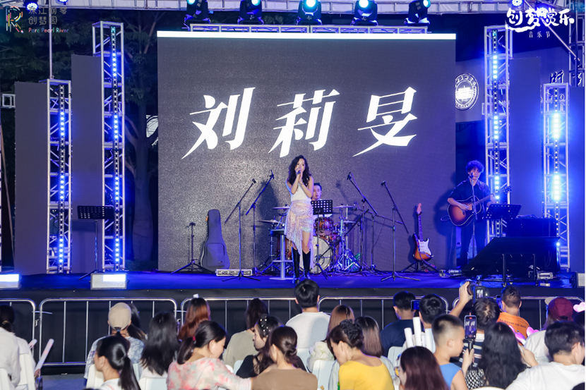 一连两天, “创梦赏乐”音乐节带来多个本地实力派歌手和乐队组合的精彩演出,音乐风格丰富多元,舞台视听效果震撼酷炫。音乐节首日,青年女歌手三岁率先登场,带来多首中外流行金曲,活力四射的演唱一开场即点燃现场观众的热情。
