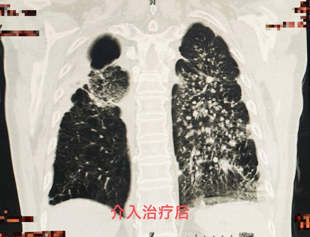 介入治疗前,吴叔的右肺有巨大肺大疱
