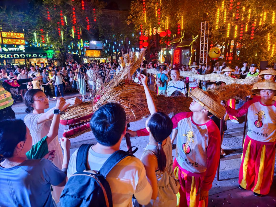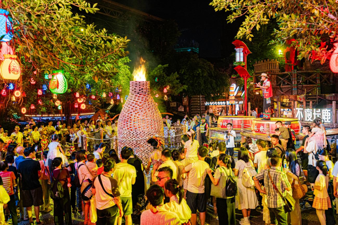 在中秋期间,长鹿举办“月光祈福烧番塔”活动。象征着希望的烈火在月圆之夜点燃,火苗顺着番塔步步高升,游客朋友们一起载歌载舞,欢声笑语,红红火火共庆团圆夜。