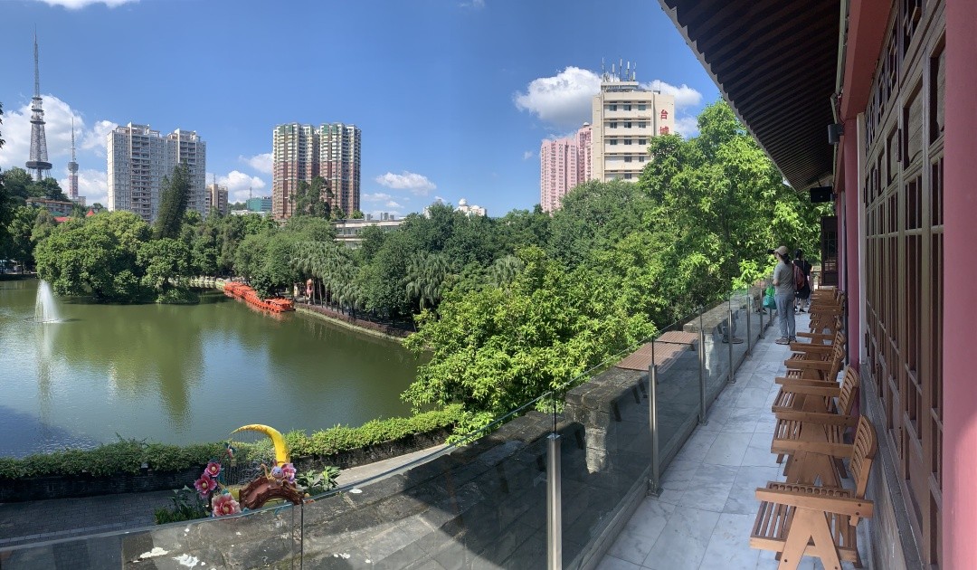 城门楼三层既有室内也有露台,从室内移步露台,可以环绕一周,观察城门楼四面八方,往西可观越秀公园秀美,往东可望小北路的车水马龙和高楼大厦,一边是一湖碧波清净如洗,一边是繁华闹市人流如鲫,门楼里外,动静相接,一楼之隔,相映成趣。