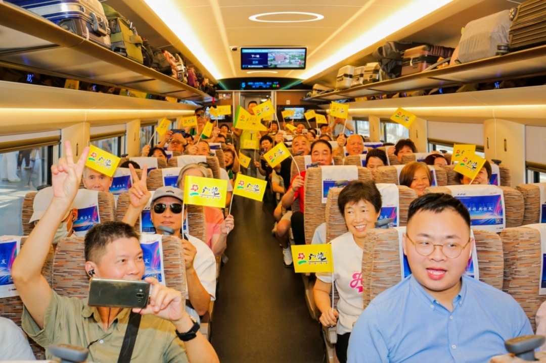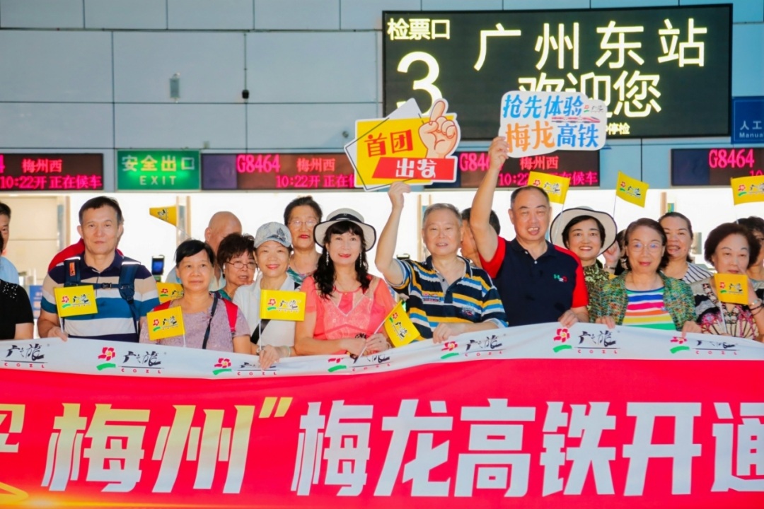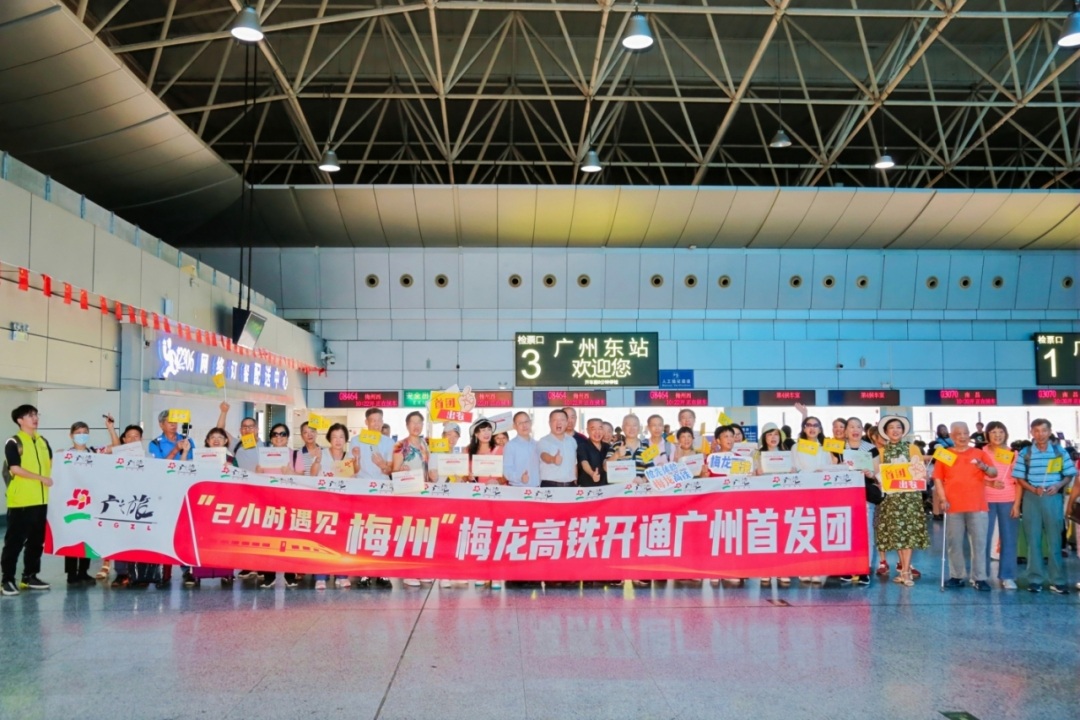9月19日上午,广州市文化广电旅游局组织14家广州地区头部旅行社,岭南集团旗下广之旅组织近200市民游客,乘坐G8464次列车,从广州东站出发,直达梅州西站。该团队也是“龙龙高铁”梅龙段开通运营后的首个旅行团。