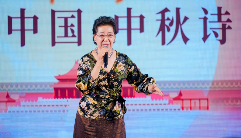 9月17日中秋之夜,著名女中音歌唱家关牧村在北京地坛书市举办的第七届诗词中国·中秋诗会上,以一首轻盈欢快的《打起手鼓唱起歌》点燃了全场热烈气氛。