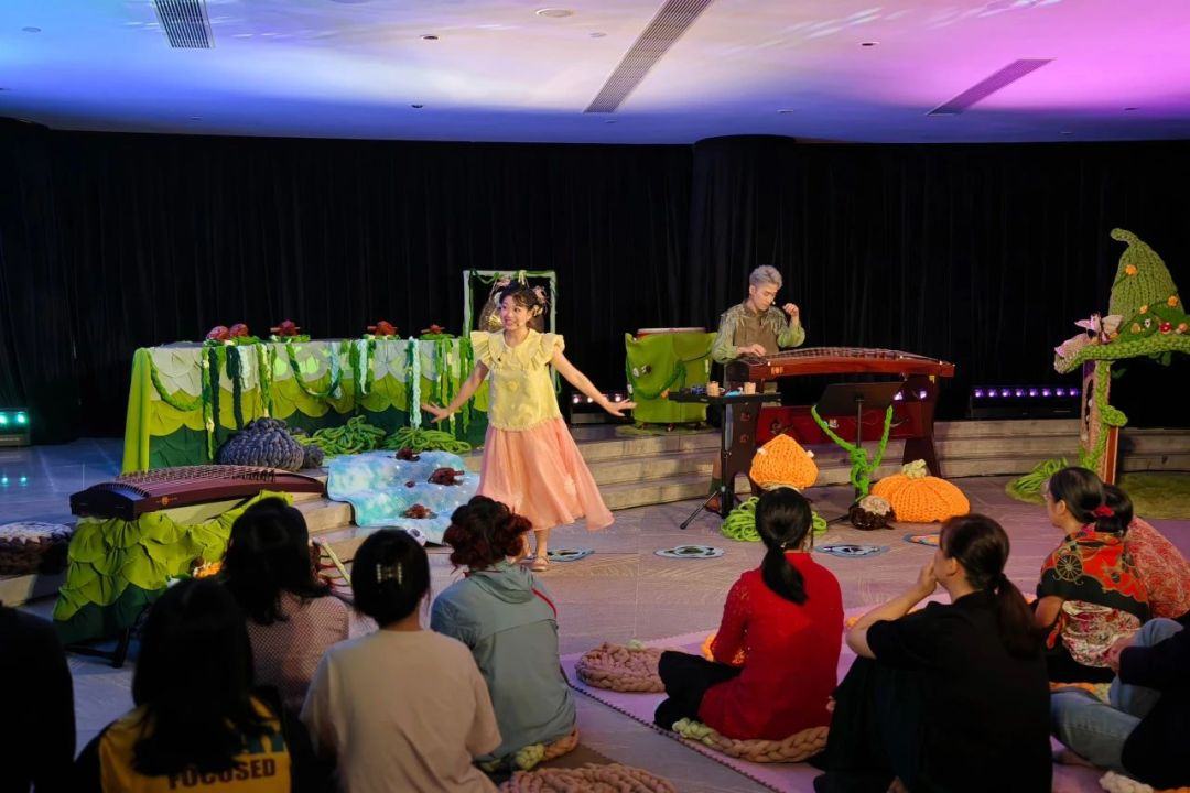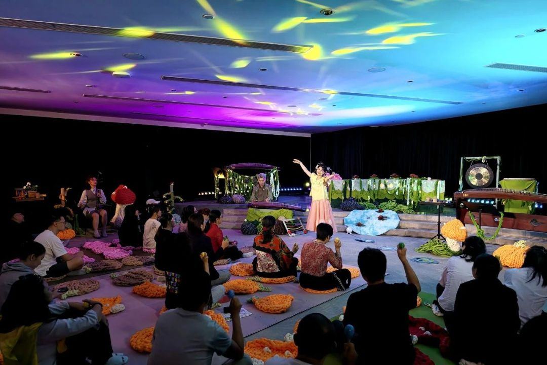 演出场地星海音乐厅“音乐空间”在国风版中变身“黑匣子”微剧场,以写意灯光烘托出落霞满天、月光如水、晨光乍现等场景,打开孩子奇妙想象。软糯布景打造奇幻森林,孩子们光着脚丫,坐在草地般柔软的坐垫上,依偎在爸爸妈妈身旁,如同置身大自然的怀抱。沉浸式观演环境,让演员近在咫尺,互动环节人手一件小乐器,亲密互动,在音乐游戏中感受无穷乐趣,探索艺术奥妙。