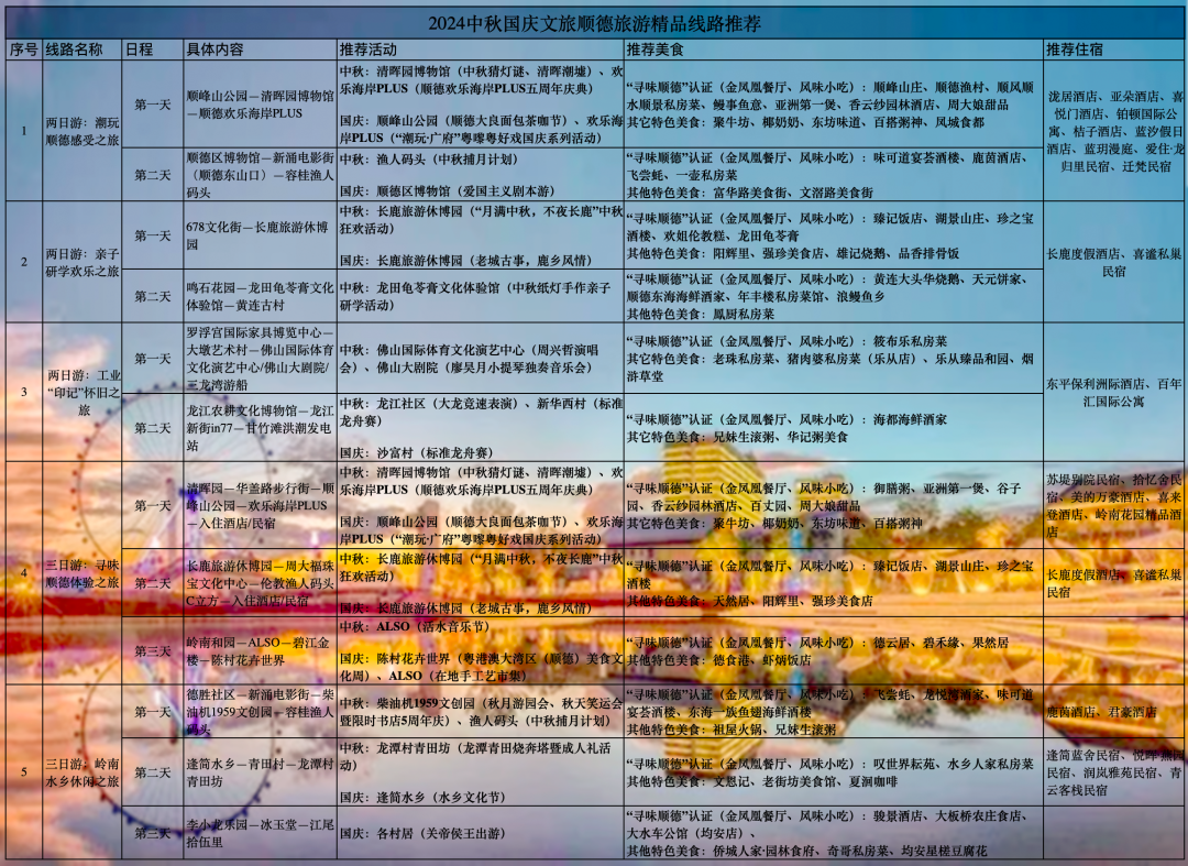 更多国庆假期游玩顺德推荐线路详见下图▼