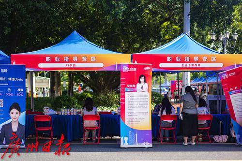 而在湾区青年服务咨询摊位,大湾区职场导师为求职的港澳青年大学生提供政策讲解、个人成长、生涯规划等方面的咨询和建议。大湾区职场导师徐嘉莉表示:“其实现在许多企业非常青睐具有世界前沿视角和湾区文化背景的人才,但是很多身在湾区的学生恰恰忽略了自身这一得天独厚的优势。”她建议学生们把握优势,拓宽思维框架,勇于创新、大胆尝试,把开放思维与文化背景和就业有机结合起来。来自香港的大湾区职场导师林惠斌则建议学生们培养快速学习的能力,“多去学习新鲜事物,多了解市场变化,这样才能适应企业发展需求,提高自身竞争力。”