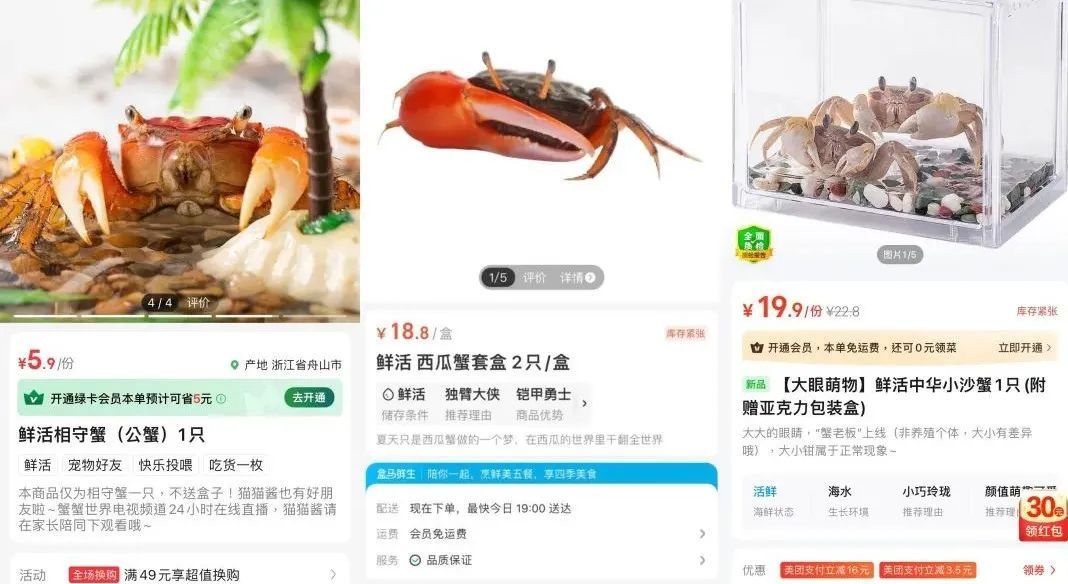 异宠的种类五花八门,只要你想,几乎什么都能“养”。比如之前,螃蟹作为宠物突然火了——多个线上购物平台相继上线了宠物螃蟹,并且起了“相守蟹”这样的名字,引诱情侣们成对购入。